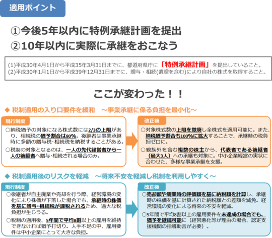 事業承継税制の改正概要(中小企業庁発行)より画像参照
