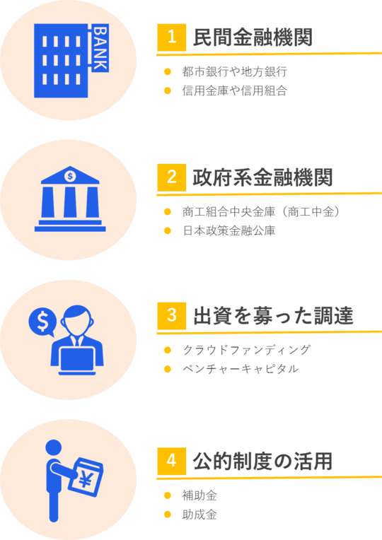 資金調達には様々な種類があります。