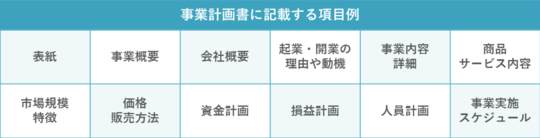事業計画書には様々な書式がありますが、以下の項目はその中でも 代表的な項目です。